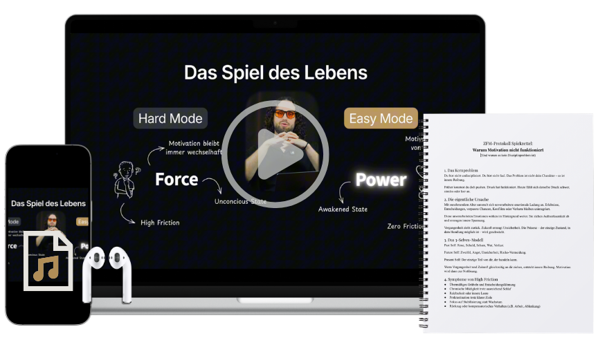 Zero Friction Man setzt an einer anderen Stelle an. Nicht beim Verhalten. Nicht bei Zielen. Sondern bei dem inneren Zustand, aus dem Entscheidungen entstehen.